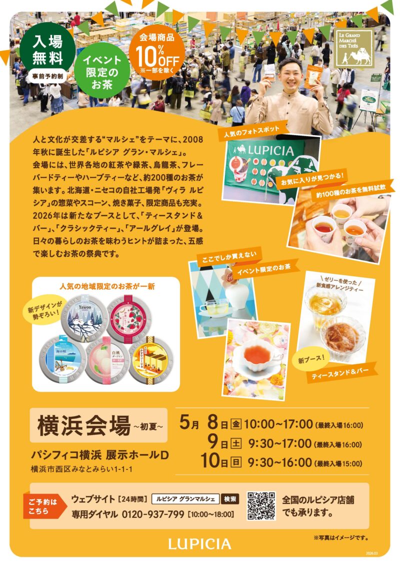 日々の暮らしのお茶を味わうヒントとして、手軽に応用できるアレンジティーのレシピをご紹介するほか、ティースタンドでのテイクアウトメニューもご用意。お誘い合わせの上、ぜひ横浜会場へご来場ください。
